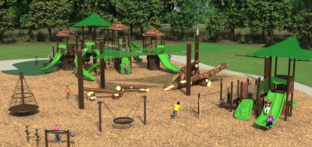 The new, nature-themed playscape is designed to foster creativity, physical activity, and social interaction. Like the current playscape, which people have enjoyed for more than 15 years, the new equipment will accommodate children ages 2-5 and 5-12.