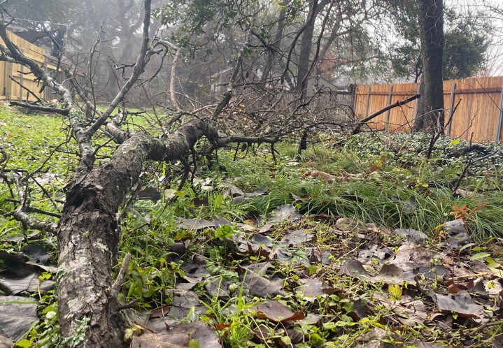This method is recommended by the Texas Forest Service and involves trimming trees and removing underbrush from a roughly 30-foot-wide strip of land on District property. Specifically, trees or shrubs with a trunk circumference of 1 inch or less will be removed, and those with a trunk circumference of 1 inch or greater will be trimmed. Larger branches that have fallen from trees or that are broken and hanging from trees will also be removed.